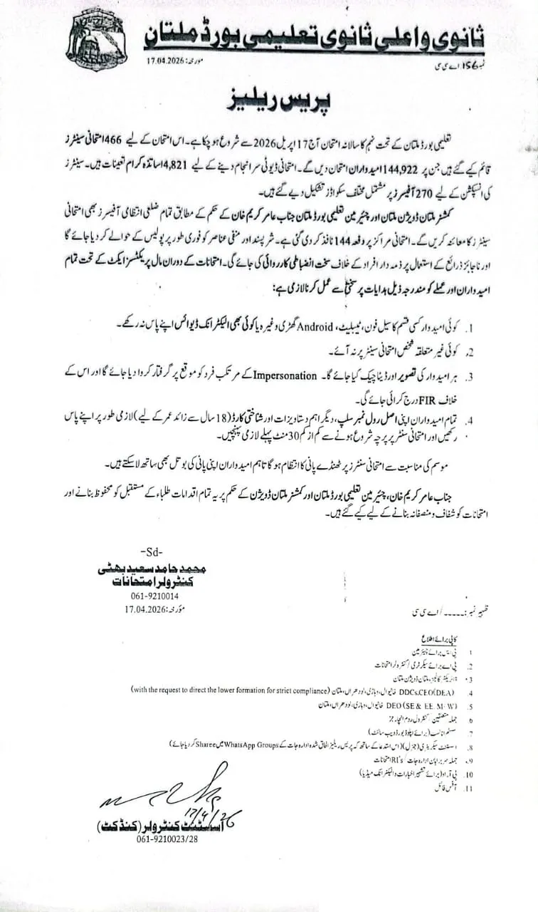 This is an important Notice from BISE Multan concerning BISE Multan SSC Part I Press Release. All concerned individuals are advised to read the announcement carefully and follow the instructions provided. For complete details, please refer to the official document attached or visit the website of BISE Multan.