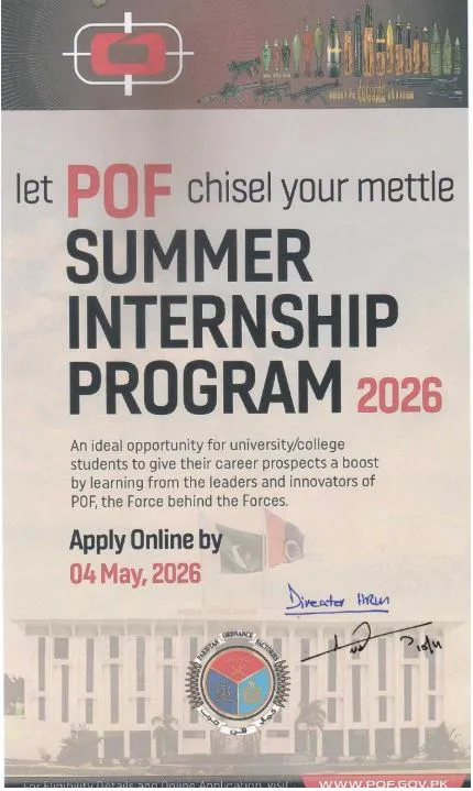 This is an important Notice from POF concerning POF Summer Internship Program 2026. All concerned individuals are advised to read the announcement carefully and follow the instructions provided. For complete details, please refer to the official document attached or visit the website of POF.