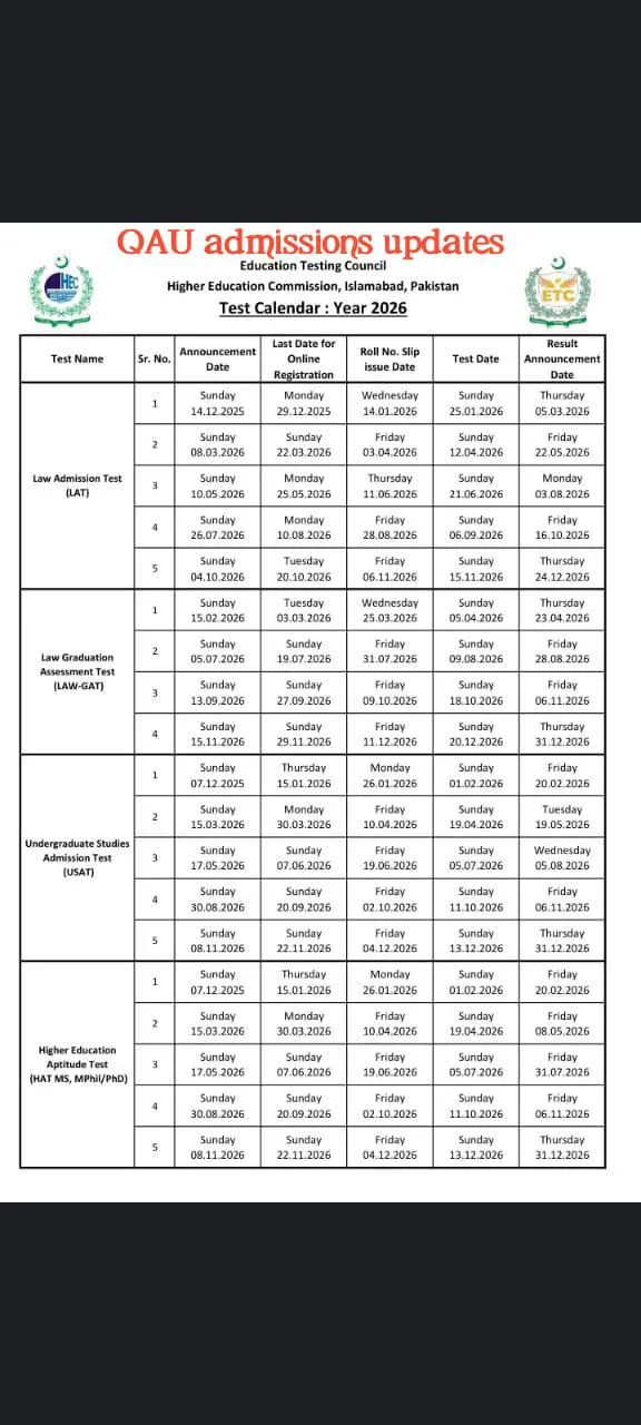 QAU Fall Admission 2026 Update